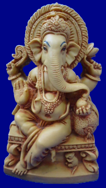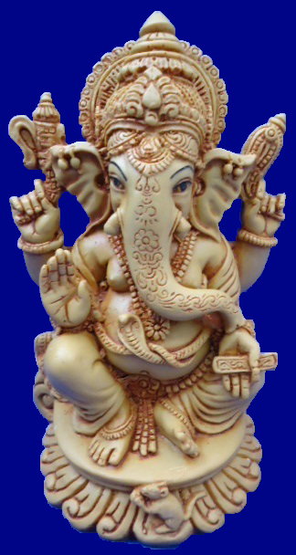 ![]() ![]() ![]() Ganesh means Ga for "knowledge" , na for "salvation" , & isa for pati mean "lord".Ganesh has four hands holding four wea