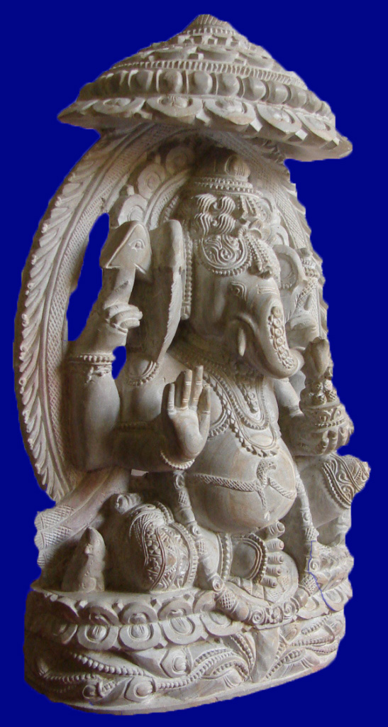 Ganesh means Ga for "knowledge�, na for "salvation" , & isa for pati mean "lord".Ganesh has four hands holding four weapons namely noose(pasa),elephant goad(ankusa),broken teeth & sweet pot .Lord Ganesh is one of the most widely worshipped Gods all over the world and worshipped at the start of any Work. Ganesh has deep knowledge, provides knowledge to those who preaches and loyal to the Lord. Here we see a seated idol of Ganesh is sitting on a throne. The most common sitting posture is known as... More Details